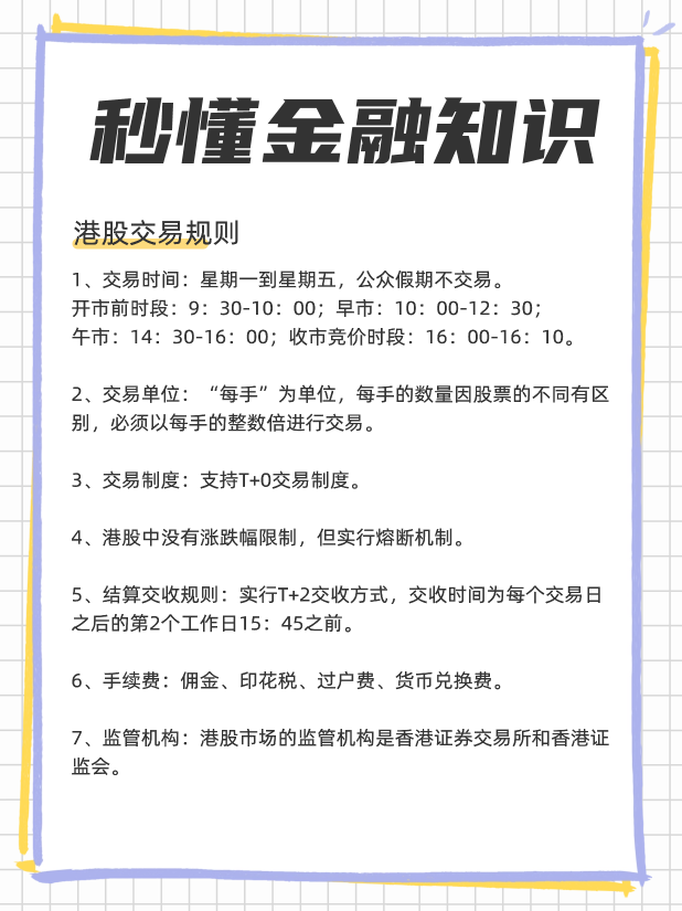 炒港股首先需要了解港股市场的交易规则,具体如下: