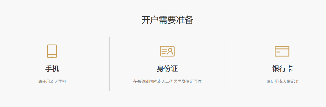 开户流程:上传身份证、填写个人资料、完成风险测评、设置密码、开通股东账户、签约三方存款银行、视频验证、接通回访电话。
