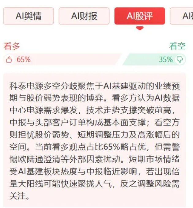 除了展示比例外,AI股评智能体还会分析当前多空分歧主要是在什么方面。