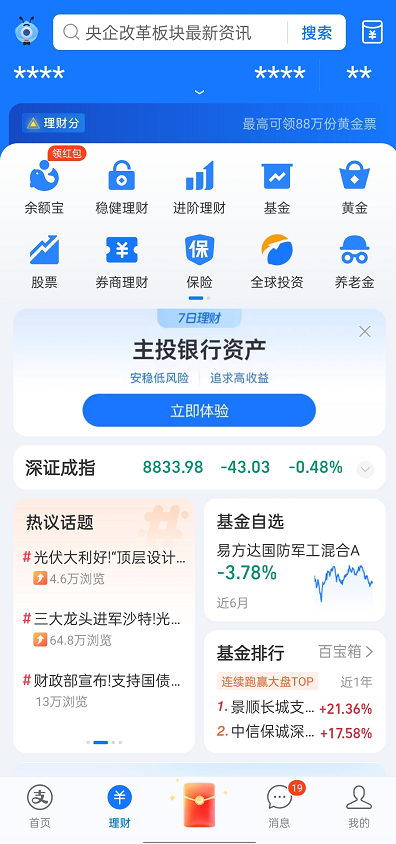 在支付宝上,用户除了把钱放入余额宝中、购买基金之外,还可以购买其他理财产品。